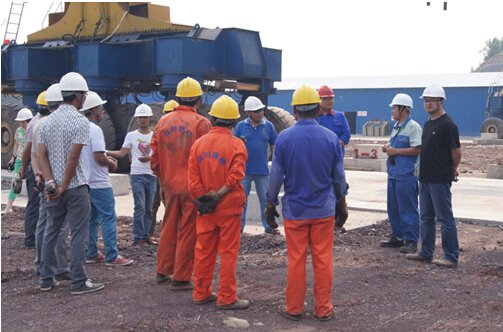 為做好第一榀箱梁的提梁脫模,分部領(lǐng)導班子成員作了緊密部署和精心安排。組織員工召開安全技術(shù)交底會,針對900噸提梁機作業(yè)流程、操作要領(lǐng)、安全注意事項做了詳細的交底。劃分責任區(qū),落實到人,嚴格控制各個工序質(zhì)量,遇到問題,及時解決,確保提梁機運行環(huán)境安全。每一個細節(jié)、每一個方案領(lǐng)導班子都親自把關(guān),最終順利完成首次提梁工作。