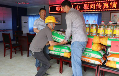 6月1日上午,項(xiàng)目經(jīng)理郭勇、黨支部書記李地霍帶著項(xiàng)目部購(gòu)買的粽子、大米、食用油以及清涼油、藿香正氣水等節(jié)日慰問(wèn)品和防暑降溫品來(lái)到施工現(xiàn)場(chǎng),將項(xiàng)目部的關(guān)愛(ài)送到每一位參建員工的心中。