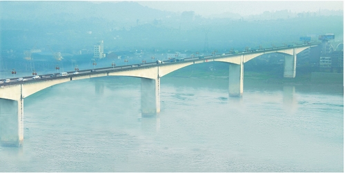 瀘州長(zhǎng)江大橋全長(zhǎng)1252米,主跨170米,預(yù)應(yīng)力砼T型鋼構(gòu)橋,1982年9月建成通車。獲國(guó)家科技進(jìn)步三等獎(jiǎng)。