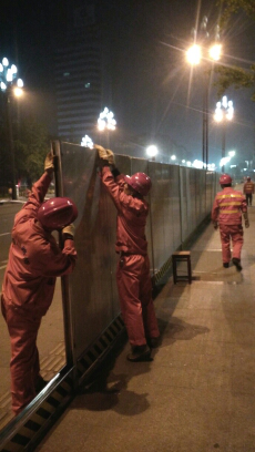 宜賓南門大橋于4月26日0.00正式打圍施工,江水悠悠,夜色茫茫,只見100余位身穿橘紅色的四川路橋工作服的”川橋人”,在夜色中憑借燈光,分成兩隊7個小組戰(zhàn)斗在大橋南北岸引橋上下游側(cè)、引道橋頭、外南街上下游、橋頭五號墩等位置,奮力進(jìn)行圍擋施工和交通標(biāo)志牌的擺放。