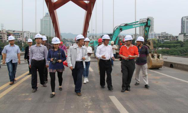 4月28日上午,宜賓市副市長李學(xué)焦帶領(lǐng)市交通運(yùn)輸局、公路局等相關(guān)單位負(fù)責(zé)人蒞臨宜賓市南門大橋加固維修改造工程施工現(xiàn)場視察指導(dǎo)工作。