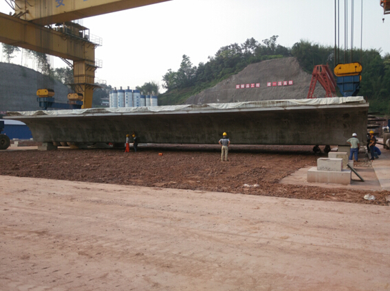 5月13日下午16時,伴隨著機器的轟鳴聲、鞭炮聲、熱烈的掌聲和歡呼聲,900T輪式提梁機將737.6噸箱梁緩緩提起,成功將737.6噸箱梁移至存梁臺座,這標志著翠屏制梁場正式進入箱梁批量生產(chǎn)階段,為后期的施工生產(chǎn)奠定了堅實的基礎。
