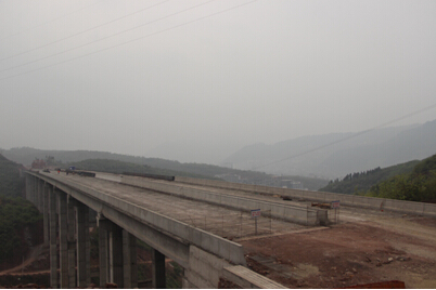 2015年3月21日,施工現(xiàn)場一片熱火朝天,一幅幅大干快上的景象。11點20分,架橋機穩(wěn)穩(wěn)的安裝完最后一片T梁,標(biāo)志著木地堂大橋T梁順利安裝完畢。這是我部繼燒炭溝大橋完工之后,第二座施工完畢的橋梁,為確保總目標(biāo)的提前完工打下了堅實的基礎(chǔ)。