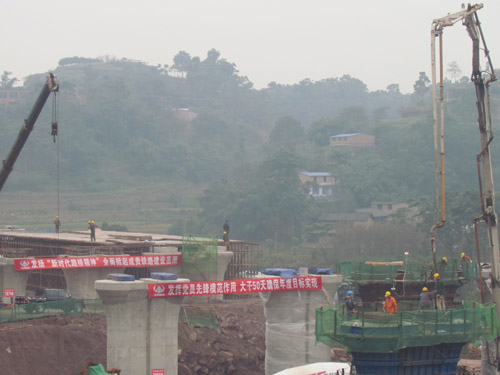 隧道施工由于不受天氣影響,搶抓隧道工程,才能穩(wěn)步推進工程進度,完成年度目標(biāo)任務(wù),目前,豆子灣隧道平均每天進尺3米,皂桷磅隧道平均每天進尺1.6米,佛界山隧道經(jīng)過搶趕工期已于12月2日正式進洞施工,每天進尺0.8米。宜賓車站一號橋正在搭設(shè)現(xiàn)澆支架,計劃在12月底完成4、5線第七跨箱梁澆筑。宜賓車站二號橋也正在進行16-22號高墩的施工。