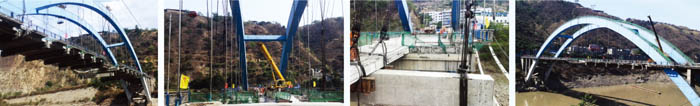 倮果金沙江大橋位于攀枝花市省道214線,于1995年1月建成通車(chē)。2012年12月10日下午6點(diǎn)15分,大橋7號(hào)吊桿下部傳力錨定裝置失效,導(dǎo)致局部橋面板、人行道呈V字形凹陷。公司臨危受命,對(duì)大橋進(jìn)行搶險(xiǎn)、加固。